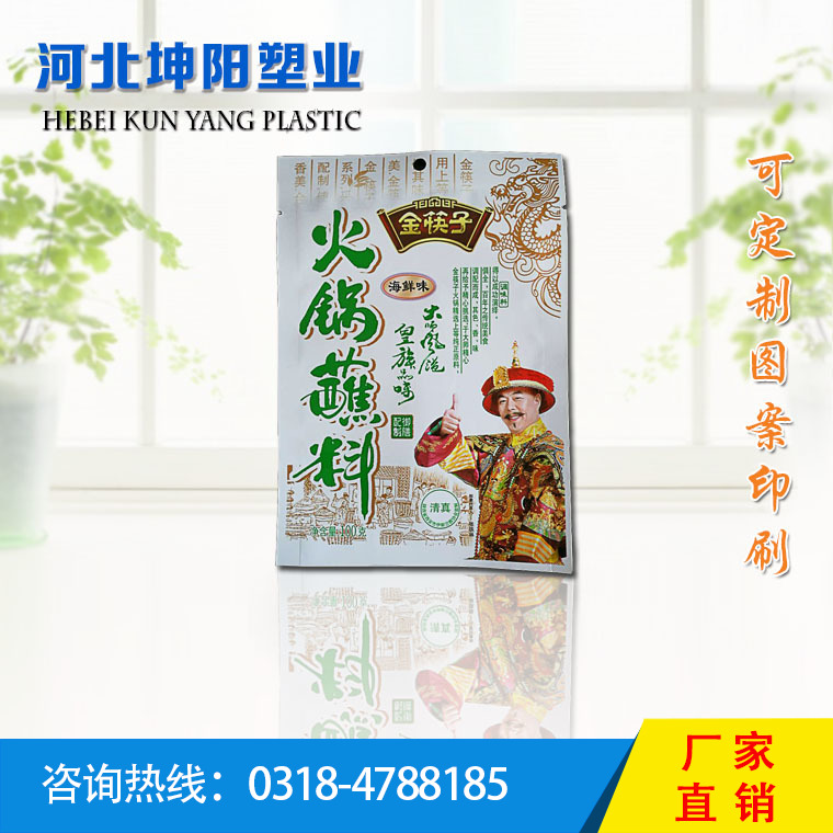 ? ? ? ? 河北坤陽塑業有限公司是一家集定制,設計,印刷于一體的包裝袋生產企業,本公司擁有十色印刷機、高速復合機、制袋機等設備,專業生產食品袋、真空袋、拉鏈自立袋、鋁箔袋、火鍋調料袋、奶食品袋、醬菜袋、五邊封袋、高溫蒸煮袋、UV印刷復合袋、易揭封口蓋膜及各種包裝復合膜、超市專用手提袋、手撕袋、托盒等。公司歡迎各界人士前來咨詢洽談。